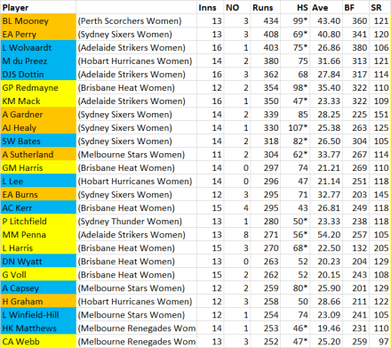 The stand out names? Harris, Gardner and Perry; because they bat down the order after the top order have chewed up lots of balls (scoring slowly).
